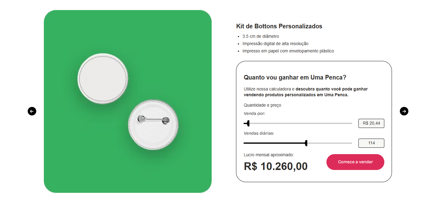 Crie a sua loja de bottons personalizados 100% gratuita em Uma Penca